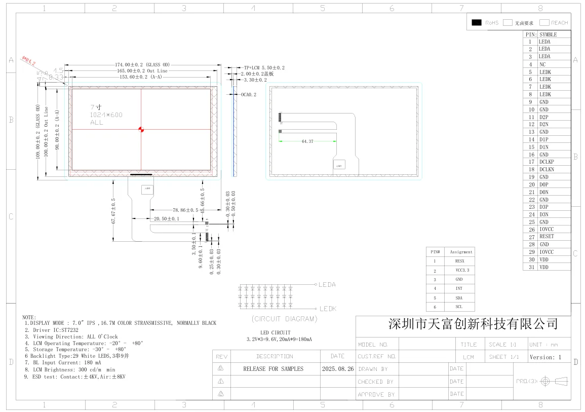 🔍 客户需求:7寸液晶模组,要求宽温、低功耗。核心诉求是“起订量小(首批500台)+快速调试支持”。