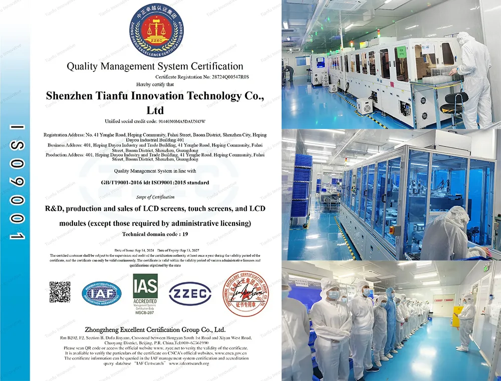 ✅ 认证齐全:按照ISO9001认证流程制造; LCD 显示模块符合 RoHS 和 CE 标准。